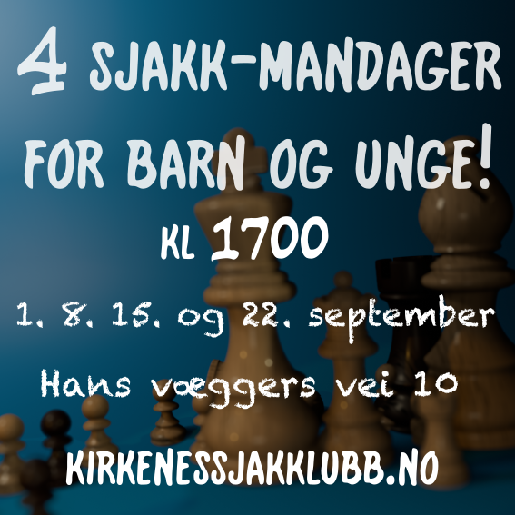 Fra og med uke 41 i 2025 (etter høstferien) er sjakk for barn mandager kl 1730 – 1830!